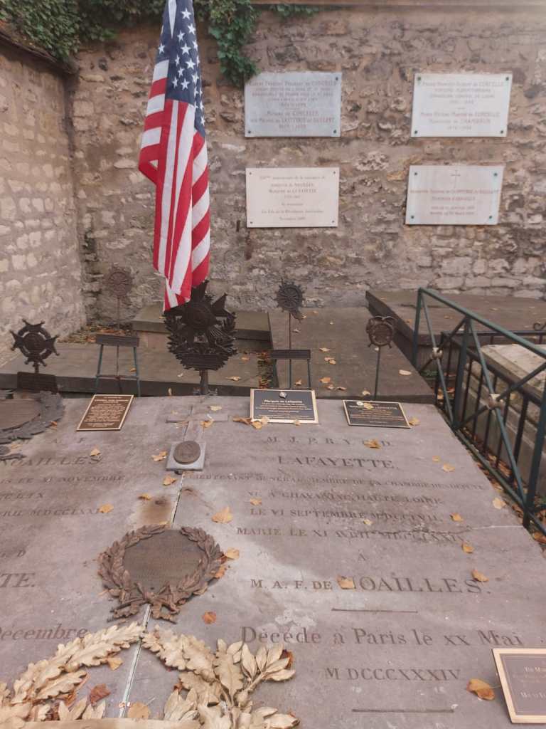The cemetery is organized in two parts. At the forefront stretch simple tombs and stone crosses bearing the great names of the ancien régime: de Noailles, La Rochefoucauld-Doudeauville, Montmorency,… In a modest corner rests General Lafayette, hero of the American Revolution, whose coffin is covered with soil brought from Bunker Hill. Each 4 July, the American flag is raised over his grave in a gesture of enduring gratitude.
